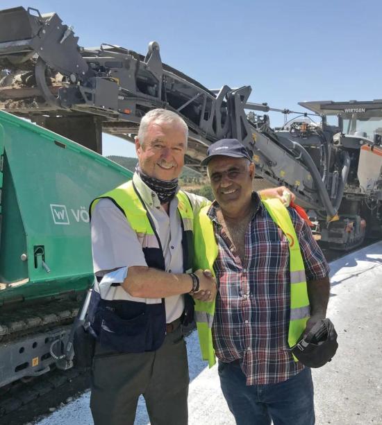 来自施工单位 Pragosa 的领班 Pedro Silva 先生以及维特根的再生专家 Mike Marshall 先生(左)一致认为,使用 W 380 CR 进行就地冷再生施工既快速又经济。