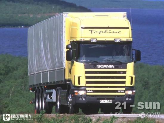 1997年,斯堪尼亚推出4系列车型,可以选装Topline系列驾驶室以及14L排量的530马力的V8发动机。