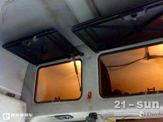 驾驶室采用了高顶双卧铺设计,右上角可以看到独立的透明舷窗,可以为室内提供更好的采光效果,同时也是高端的专属象征, 这一经典的设计,一直延续到2017款TGX车型中。