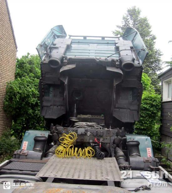 现任车主购置还在牵引销上方加装了一个独立的宽体置物台,用来存放卡车聚会时的物品,相比拖拽16m的标准规格侧帘挂车,有种大材小用的感觉。