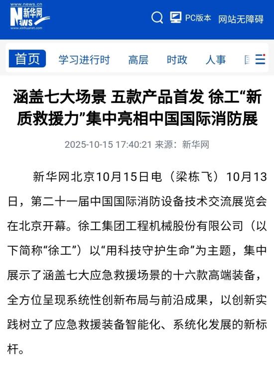 报道中谈到,应急救援装备正从‘有人’向‘无人化’,并进一步向‘智能化’深度发展。“徐工已围绕设备的无人化与智能化进行了系统性、前瞻性布局。我们的未来方向非常明确,那就是从单机智能,到多机协同,最终迈向集群智能化的立体作业。”