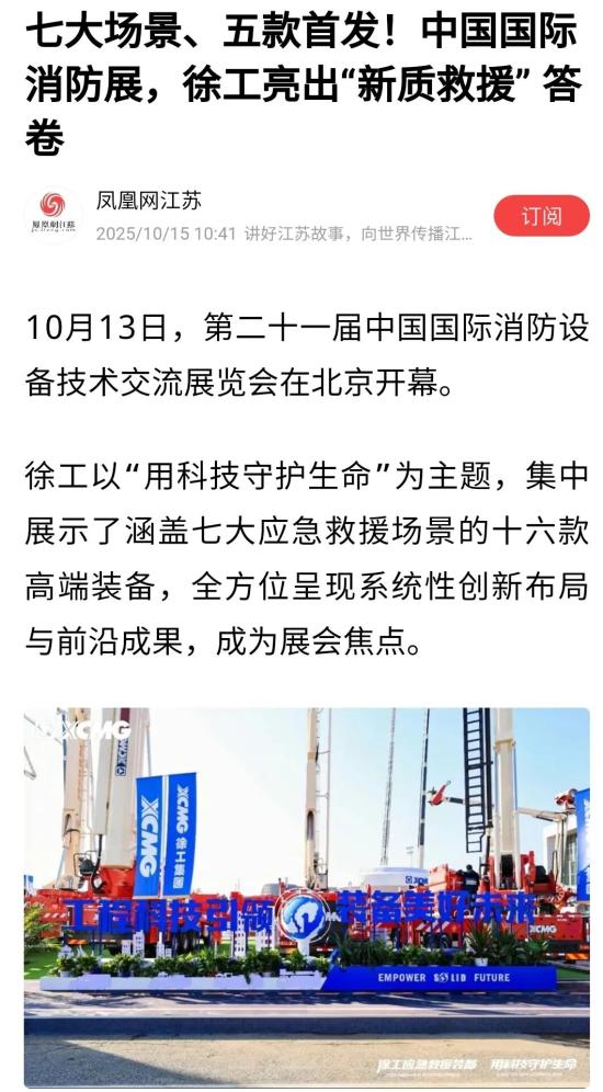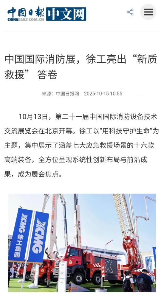 开展期间,徐工高端应急救援装备与徐工专业应急救援队的亮相,吸引了央视、凤凰卫视、新华网、中国日报等权威媒体及各大专业媒体的高度关注和专题报道,成为展会现场备受瞩目的焦点。