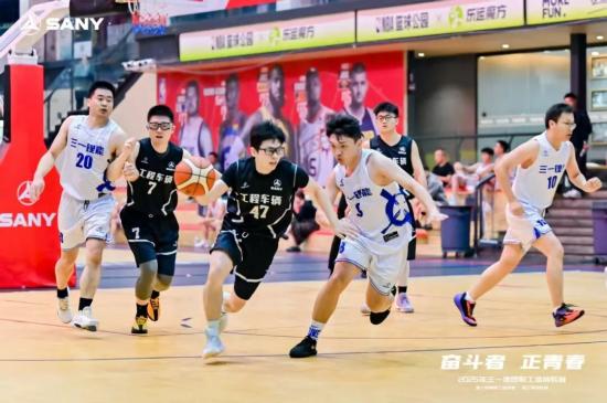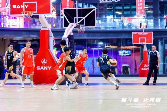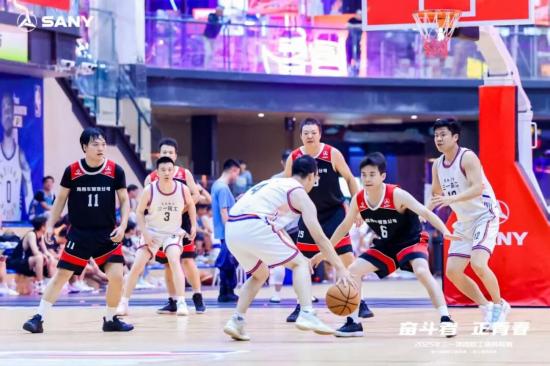 在三一职工篮球联赛中,运动员们奋力奔跑,将热汗挥洒在赛场上,将滚烫的爱心奉献在场下。