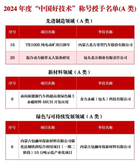 近日,2024年度“中国好技术”评选结果正式揭晓,北方股份“TR100E纯电动矿用自卸车”科技成果入选“中国好技术”A类项目库,是北方股份技术实力与创新能力的有力证明。