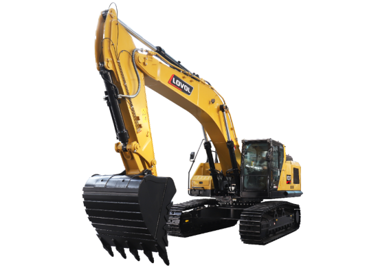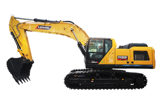 采用大容量岩石专用铲斗,动臂采用大截面三段式结构设计,尾部变截面过渡,中段内部增加筋板;斗杆采用大截面结构设计,前后轴座开档加宽,截面加宽,整体强度和刚度提高;整体去应力退火处理,可靠性大大提高。