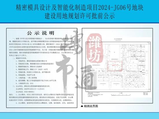 10月31日,精密模具设计及智能化制造项目2024-JG06号地块建设用地规划许可批前公示。