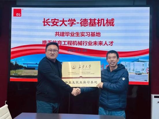 2025年11月5日,长安大学与德基机械共建毕业生就业实习基地授牌仪式在德基机械隆重举行。长安大学工程机械学院党委副书记雷剑、副院长贺朝霞,德基机械总工程师周伟、总裁助理胡亚男、技术研发总监郭国川等双方代表共同出席仪式,标志着校企合作迈入深化实践与创新共赢的新阶段。