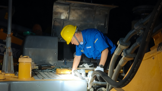 消息传来时,服务工程师马子龙正在另一处工地。他立即清点工具,驱车奔赴现场。深夜抵达后,他迅速锁定液压系统故障,立即投入检修。闷热的夏夜,汗水浸透工装,蚊虫不断滋扰,他的注意力始终聚焦在设备上。