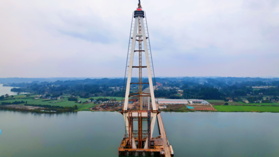 湖岷江特大桥主塔采用六边形箱型截面,结构复杂,高空作业安全风险大,XGT2850-120S为大桥模块化拼装提供了关键支撑。