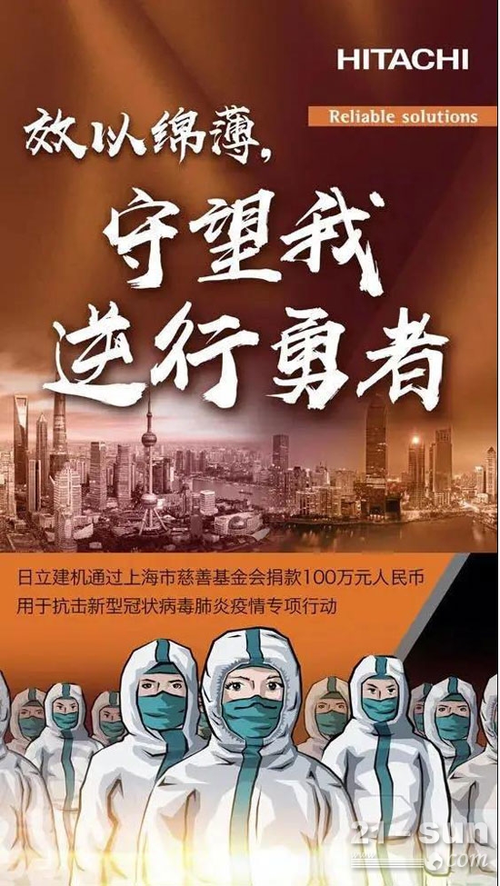 日立建机(上海)有限公司,通过上海市慈善基金会,向新型冠状病毒专项行动捐款100万元人民币,为远赴他乡的一线医务人员提供进一步的爱心援助。此外,日立其他集团公司也在不断积极行动,通过捐助款项物资等为战“疫”者们送去支援,并及时响应社会需求,为合作伙伴、客户提供援助和便利,也为疫情后期关联企业的复工贡献力量。