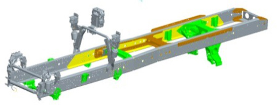 车架如同泵车底盘的骨骼,它是决定底盘能背负多少重量的重要因素。底盘纵梁通常为一层或多层高强钢板折弯嵌套在一起的C型结构,不但要求其具有很高的强度,同时也要求足够的柔韧性来面对工地上崎岖、复杂的路况。一旦底盘纵梁出现问题,对泵车的使用稳定性造成巨大影响,强行使用将导致车架撕裂,臂架倾翻。