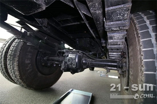 车辆悬挂全部为多片式钢板弹簧。630L1的大梁侧面非常干净,这是曼恩的工程师将储气罐全部安装在大梁内侧的缘故。欧洲品牌由于起步较早,在车辆底盘部件的布置方面早已有自己的经验。