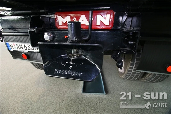 全挂车在欧洲地区的使用一直经久不衰,这辆630L1的车尾也安装了牵引钩与电气接口。比起今天曼恩常把MAN水牌安装在尾灯下方,60多年前为了提升辨识度,曼恩就已经知道把水牌打在大梁末端了。