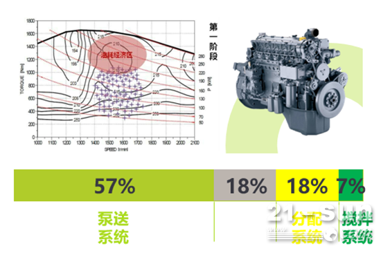 泵车施工过程中,最主要的消耗就是燃油,影响燃油经济性的指标最大程度是在于发动机,发动机能良好的适应工况的情况,从而匹配出最优的油耗经济区,那么整车的油耗会很低,降低客户对于设备的运营成本。