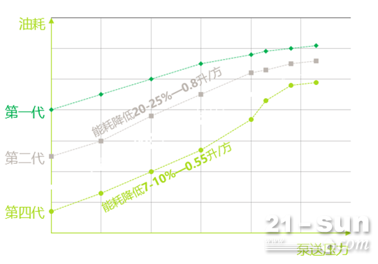 中联重科一直注重节能技术的研究,已经开发了第四代-自适应变功率技术,基于实际泵送混凝土的料的情况自动调节发动机的扭矩特性,确保任意工况下,发动机始终工作在最佳经济区,整个过程中是不需要外界人工干预的,该技术可以自动的识别、匹配和切换。经过4.0泵车的批量应用,整体油耗下降4%以上。