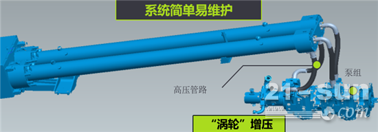 中联重科独创的42MPa单高压泵送技术,泵送出口实现从0到最大泵送压力11.3MPa的无极变化,实现与负载的自适应,类似汽车的涡轮增压技术,使得泵送性能更强,泵送效率高出同类产品5%-8%,保证各种料况良好的适应性,泵送性能高,批量搭载超过3500台4.0设备,得到了市场的认可和验证。