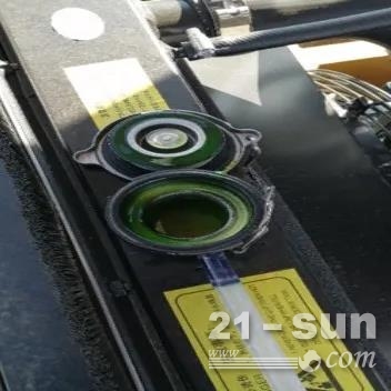 ③检查轮辋螺栓及轮胎气压,单钢轮压路机,浮力型轮胎正常工作压力为0.20-0.23Mpa,驱动型轮胎正常工作压力为0.30-0.35Mpa。