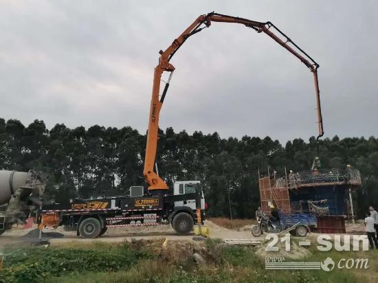 当布料杆处于全伸状态时,不得移动车身。作业中需要移动车身时,应将上段布料杆折叠固定,移动速度不得超过10km/h。