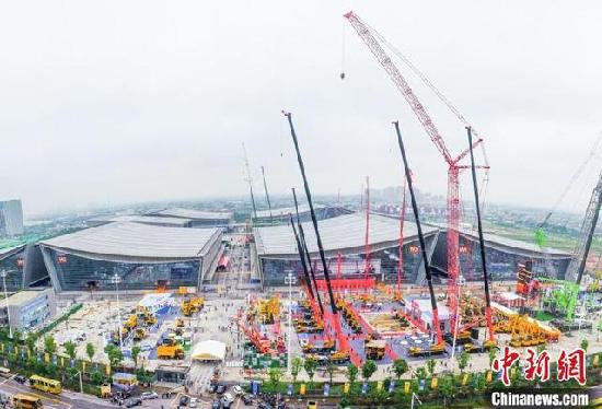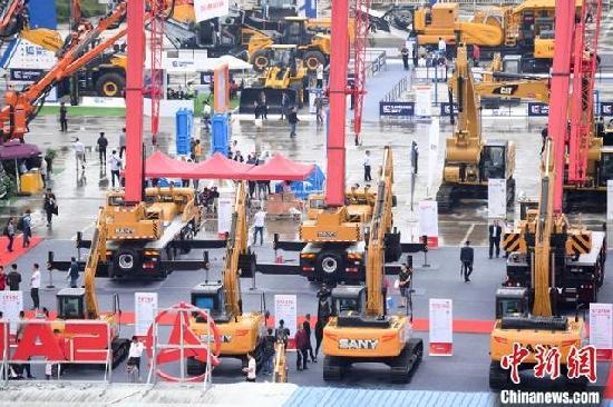 首届长沙国际工程机械展览会上展示的工程机械(资料图)。组委会供图