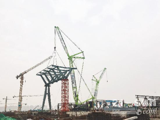 2019年,中联重科ZCC3000履带吊助建国家会展中心一期工程