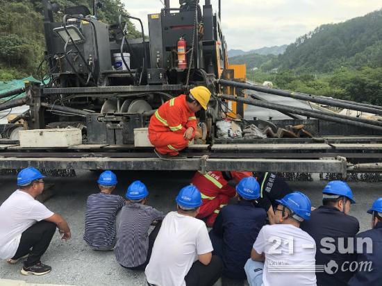 工程师针对摊铺机的离析、平整度以及摊铺密实度等方面的问题进行分析讲解,指导设备管理和维修操作人员进行现场施工调节,随后并进行了摊铺验证。同时还对摊铺机的各部构造、功能原理、操作和维保要点进行了详细的讲解。全体参与人员认真听取了讲解,纷纷表示受益颇丰,建议公司多组织类似培训活动。