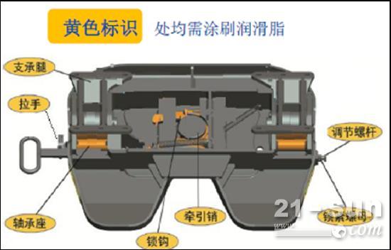 如果上卸挂困难还有可能是锁紧机构不润滑、拉手没有完全拉出、牵引车安装高度不对或者锁钩变形等原因导致。
