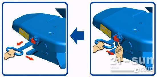 鞍座安全锁止:车辆行驶一定要保证安全锁拨手处于锁止状态,拉手没有完全回位或者安全锁拨手没回位会有巨大的安全隐患。