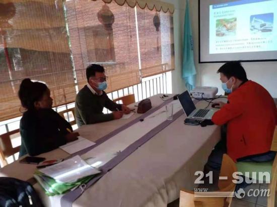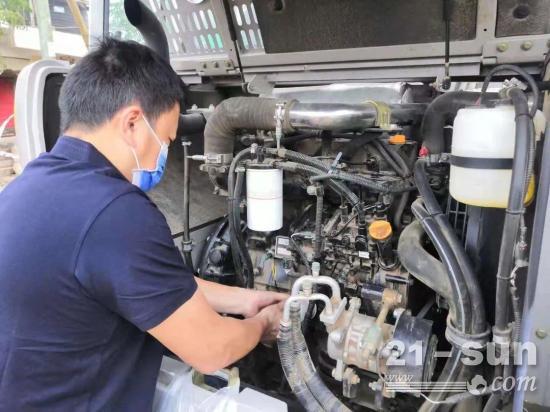 中联工程师现场对设备进行示范保养,指导客户维护保养工作。