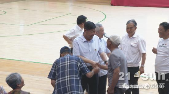 活动开始前,在方圆时代馆,集团董事局主席高秀与两位获得“光荣在党50年纪念奖章”及集团建厂初期的老职工们亲切握手,共话方圆的发展。