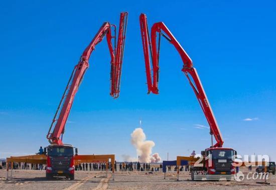 三一重工作为专业工程机械品牌,有幸见证和助力航天事业的发展。今后,无论是荒漠戈壁还是峻岭崇山,只要有需要,三一定当越过戈壁,历过群山,与所有客户“砼”行,共同实现中国梦!