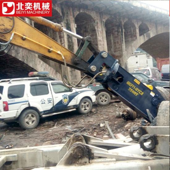 挖掘机废料剪,鹰嘴液压剪,用于剪切废钢和工业拆除。产品由高等级的钢材制造,耐腐蚀处理和防水设计,保证了工具的强度和耐磨性。这是新款废钢剪切产品,在剪切力和强度方面是市场上是比较强的。鹰嘴剪。全新一代鹰嘴剪通过产品力量,运用密封元件,并采用特殊的颚部尺寸及特殊的刀片设计来生产率。