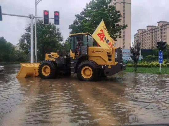 山东临工应急救援小组河南区负责人之一的王乃刚介绍表示,山东临工与郑州等地区应急救援部门联动,装载机主要负责转运受灾群众,清理路障以及救援车辆,而挖掘机主要承担道路抢修、堤坝加固等工作。目前郑州雨势渐停,但积水依旧严重,主要是一些车辆救援和清理工作。仅在鹤壁地区,山东临工已投入了12台装载机救援,帮助转移受灾群众,在新乡还有10台装载机,5台挖掘机火速驰援,此外还有更多设备和人员持续赶赴救援。