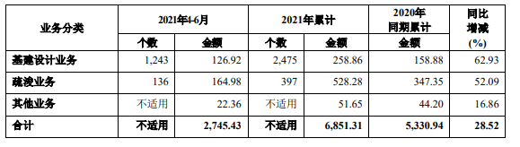 中国交建最新发布了2021年上半年度经营数据,2021年上半年新签合同额为6,851.31 亿,同比增长28.52 %,完成集团年度目标的58%。