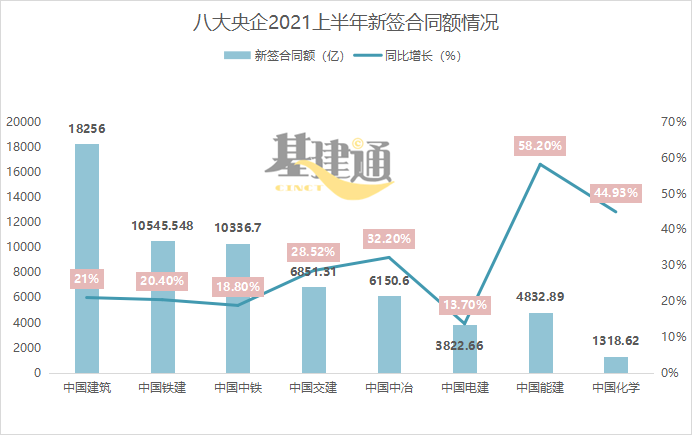 截至目前,八大央企2021上半年新签合同额全部公示,中国交建新签合同额及同比增长率均排名第四,取得不错成绩。