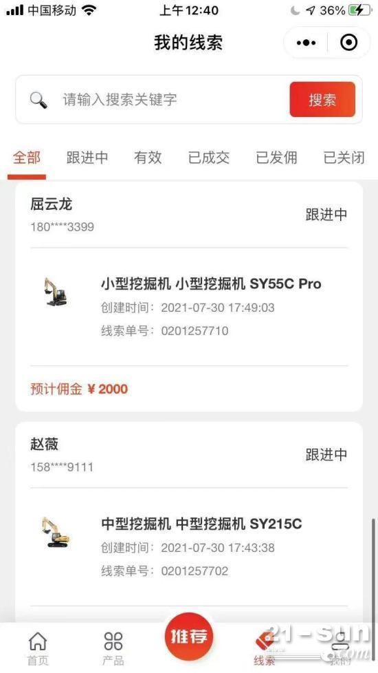 填写成功后,会有线索信息,可以在手机上看到情况。