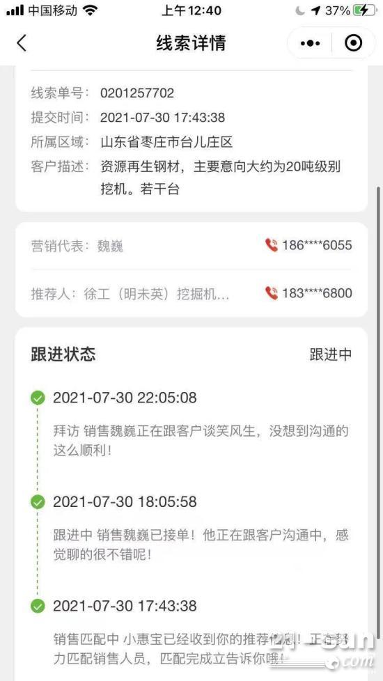 这是自己手机能看到的信息,哪一个销售跟的,跟到什么情况了.都可以查看到。