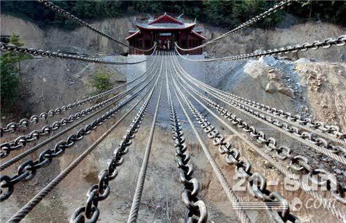 然后将铁链穿至竹筒之中,又用绳子给固定了起来,对岸的民众拉巨绳的同时就将铁链一起给带过去了,用这样相对节省人力的方法,才一根一根的把铁链的另一端运至对岸。铁链准备好之后,固定又成为了一个问题,不过这同样难不倒聪明的古人,他们将铁链的末端放入了事先挖好的井中,然后灌入铁浆,这样一来就起到了固定桥身的作用。