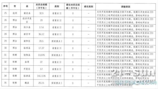 河北省则是国家电网河北电力公司公开了一部分冀南电网辖区内的整县推进试点名单,共上报35个县市区,规模总计为6.22GW;但由于受消纳限制与电网安全影响,共批复18个县市区,规模为1.64GW。
