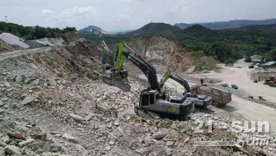 边打石灰石边装运是孔马建材厂项目施工的常态,不仅要求设备装得快,还要装得稳,我们的ZE550EK-10标配2.85m³双圆弧岩石型铲斗,挖掘轻巧,最大挖掘距离10.9米,挖掘深度6.58米,真正实现了“下斗不费力,装车更快捷。”