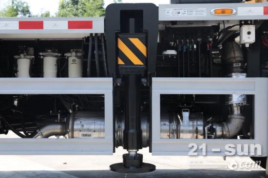 虽然自制底盘少了一个车架,但整车重量不减,还把这个重量用来加强关键的结构件了。STC120T采用创新矩形结构车架,经过了2万次高强度测试,抗弯抗扭性能更优,可靠性更高。加上加强型支腿布置,跨距达到5.8m×4.85m,实芯大油缸,吊载更稳定。