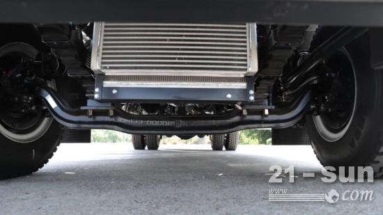 值得一提的是,车身还非常紧凑,长11.46m,高3.4m,转弯半径9m,出入车间或者走一些乡村吊预制板完全没有问题。
