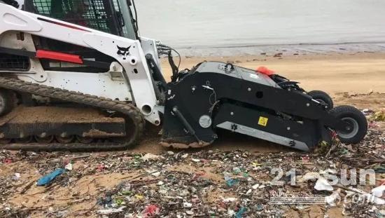 对于沙滩垃圾清理这个令人头疼的难题,山猫T770搭配专业的海滩清理机能够轻松有效处理。山猫沙滩清理机通过振动筛分,将垃圾与沙子分离,所过之处只留下干净平整的沙滩。