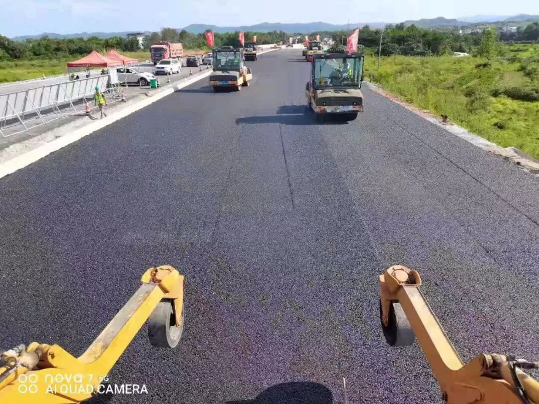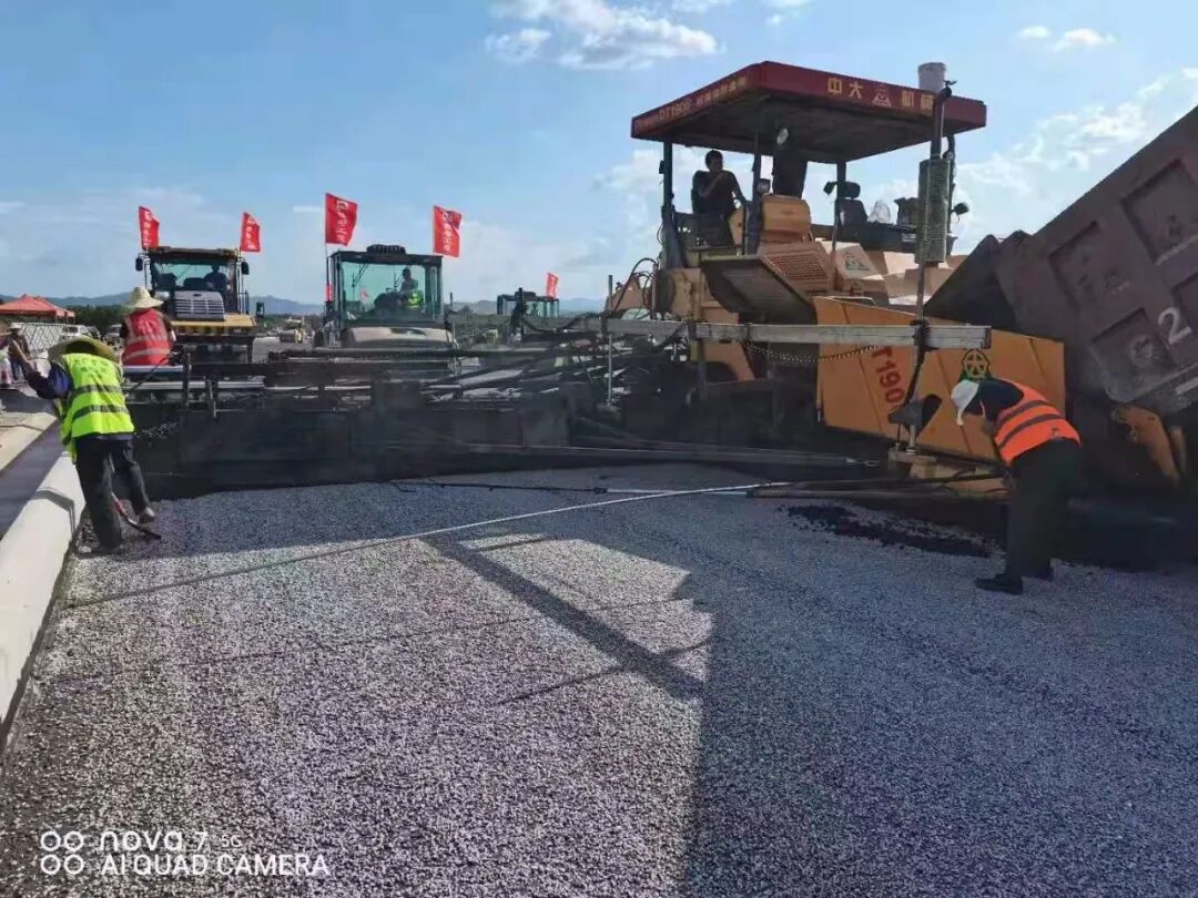 大广高速南康至龙南段扩容江西赣粤工程BP2标ATB—25沥青碎石摊铺,采用中大Power KDT1900变形金刚施工的效果。