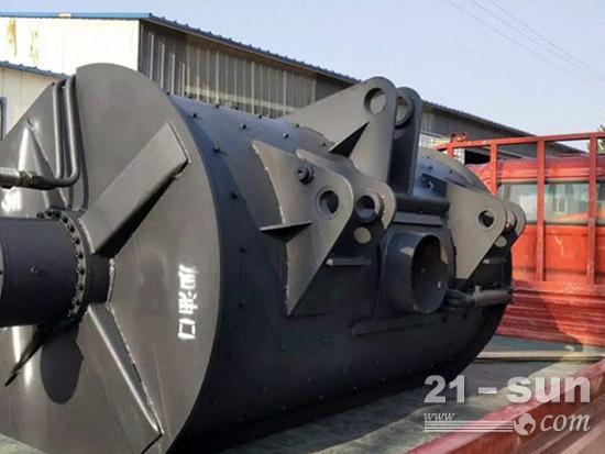 本款装载机搅拌机利用成熟的装载机生产技术和融合式混凝土搅拌机生产技术,混凝土搅拌机经过改装安装在装载机的铲斗位置,利用装载机的液压传动装置驱动搅拌机工作,既可发挥装载机方便的移动性能和自行上料、卸料的优势,又可以利用混凝土搅拌机的拌合功能,一台机械即可实现上料、拌合、转场、卸料的多重功能。
