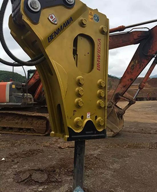 除此之外,需要破碎较厚的路面或较坚硬的物料可以选择钎杆直径大一些、打击频率高一些的破碎锤打击力度就比较大,再根据不同的工况配合专用的钎杆。