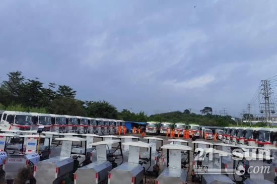 该项目涵盖了洗扫车,高压清洗车,路面养护车,自装卸式垃圾车,压缩式对接垃圾车,双向护栏清洗车等车型。由于车辆需求大,交付时间短,盈峰环境集中公司力量,立即整合车辆资源,集中供给该项目。从领导的全力支持到广西分公司的快速响应,公司上下齐心,日夜兼程,顺利完成了所有环卫作业车辆的交付使用。仅仅15天,设备分批次到达南宁。