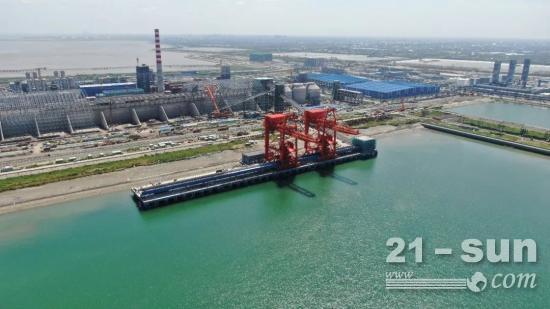 该项目自2020年8月28日正式开工建设,计划于今年9月进行热调试,工期十分紧张。海港码头的装卸设备如期上岸,标志着项目建设完成关键节点并进入最后的冲刺阶段。