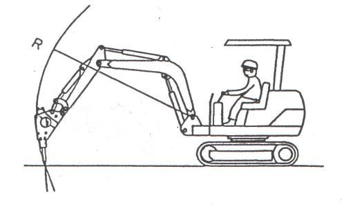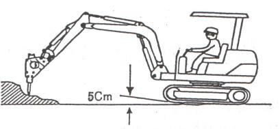 ▼ 进行打击的时候请保持液压挖掘机的前端比后端约抬高5cm左右的状态,以利于钎杆能紧压在被打击面上。注意不要使挖掘机的前端抬的太高。