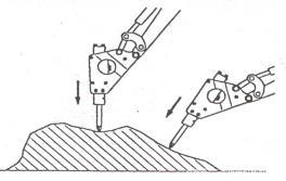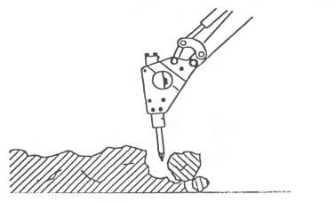 ▼ 破碎锤打击时,在钎杆与被打击面要保持直角的状态。