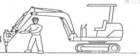 ▼ 在被破碎物已被破碎的时候,请立刻松开破碎锤操作踏板或手柄使破碎锤停止打击。